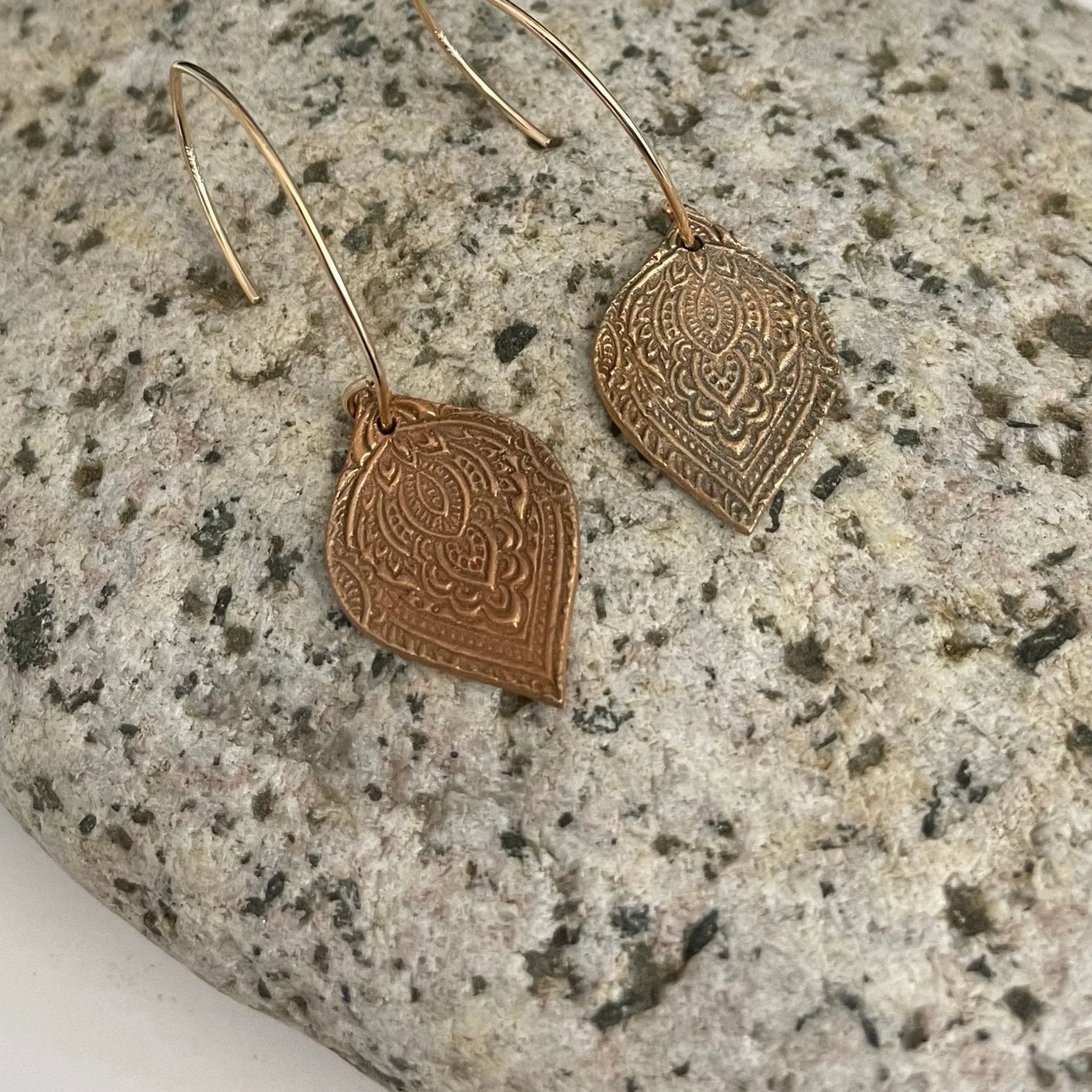 Alasha Lantinga - Earrings - Ornate Pointed Teardrop on long hooks