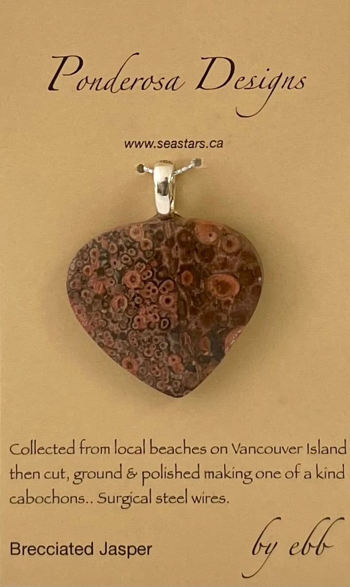 • This stone is collected from local beaches on Vancouver Island then cut, ground & polished making one of a kind hearts.