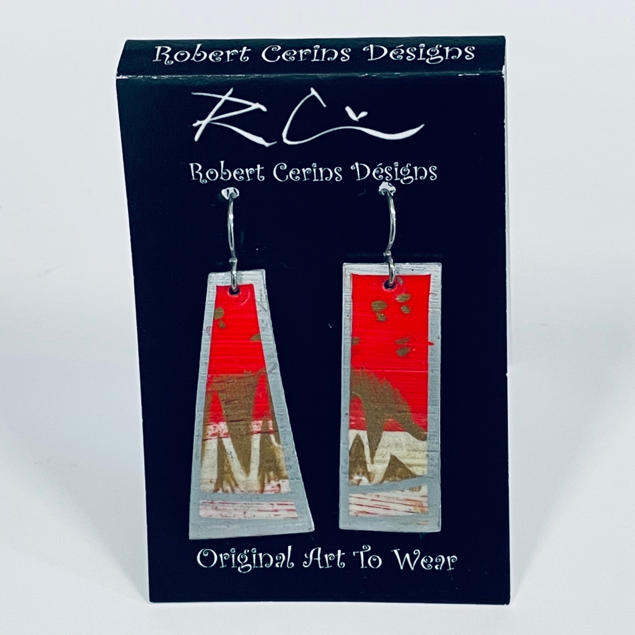 Robert Cerins - Earrings - Red - Pyramid & Rectangle
