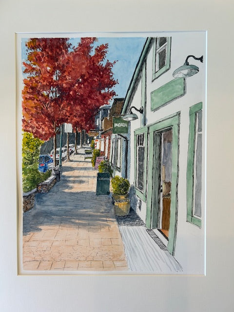 Create a pen and ink sketch, and bring a Qualicum street