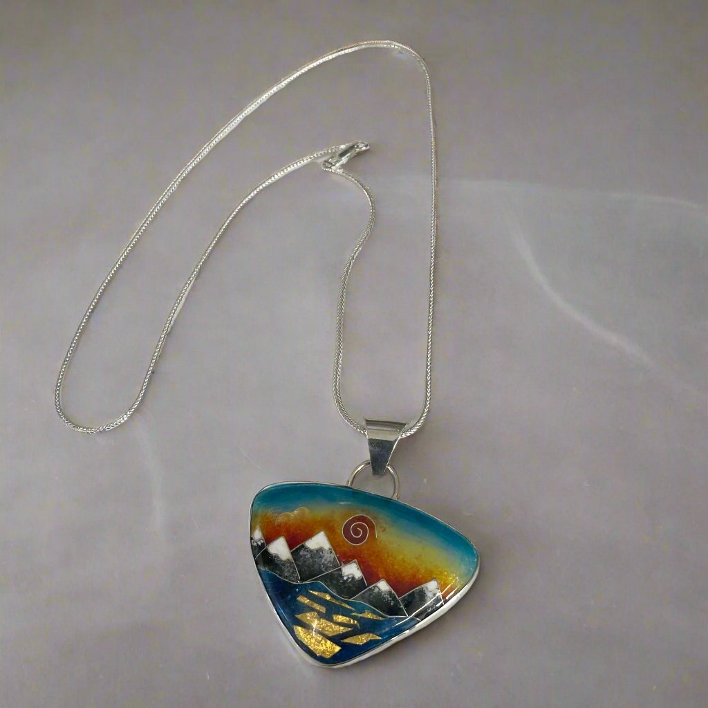 Gina Shear - Pendant -Mountain & Ocean on sterling silver chain - 18"