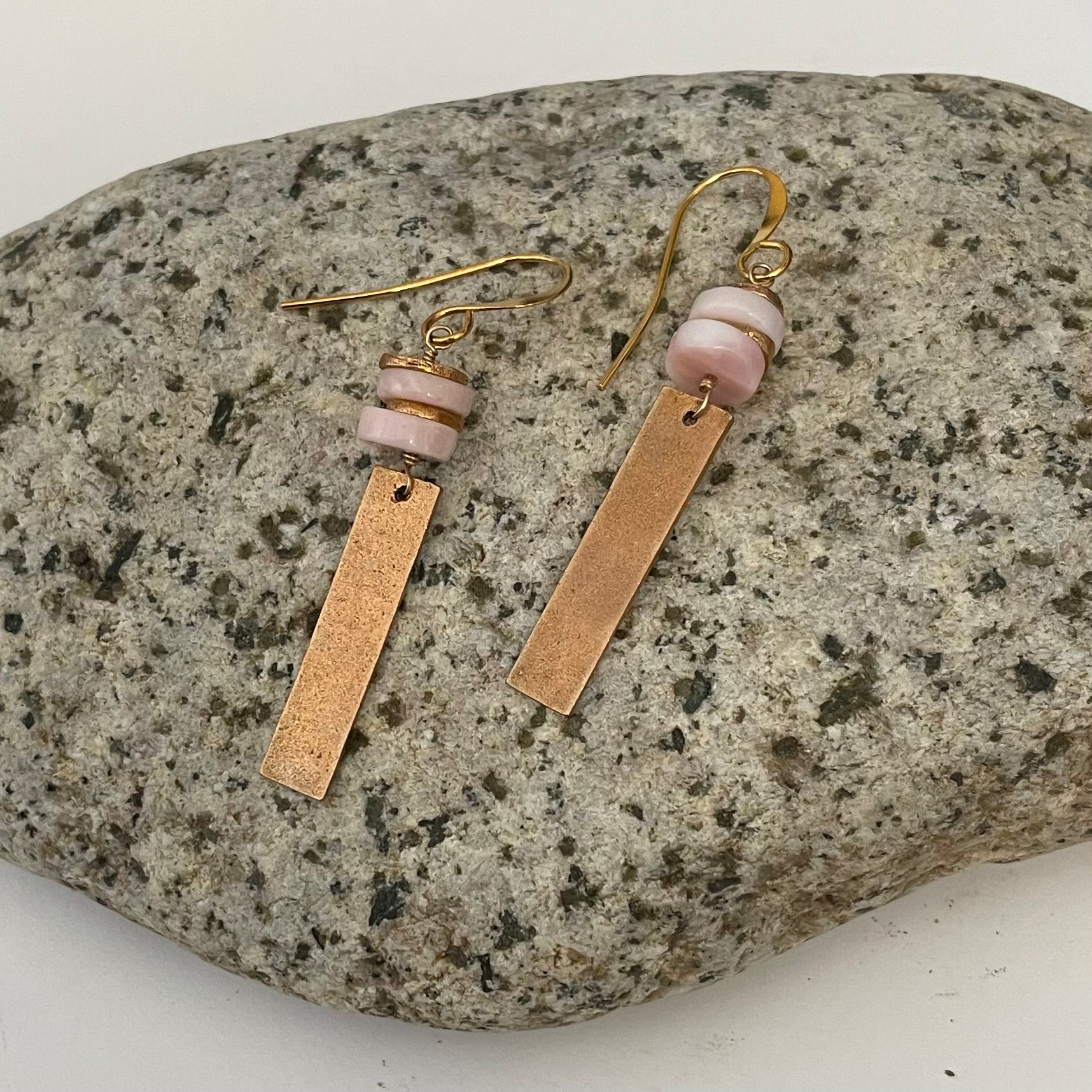 Alasha Lantinga - Earrings - Smooth rectangle with Pink Opal stacked