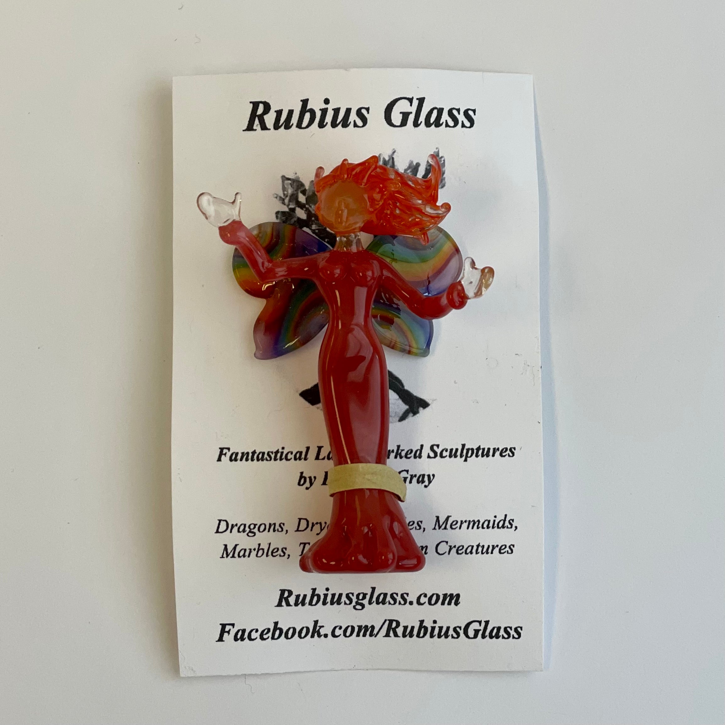 Rubius Glass - Suncatcher - Fairy - Red body, rainbow wings