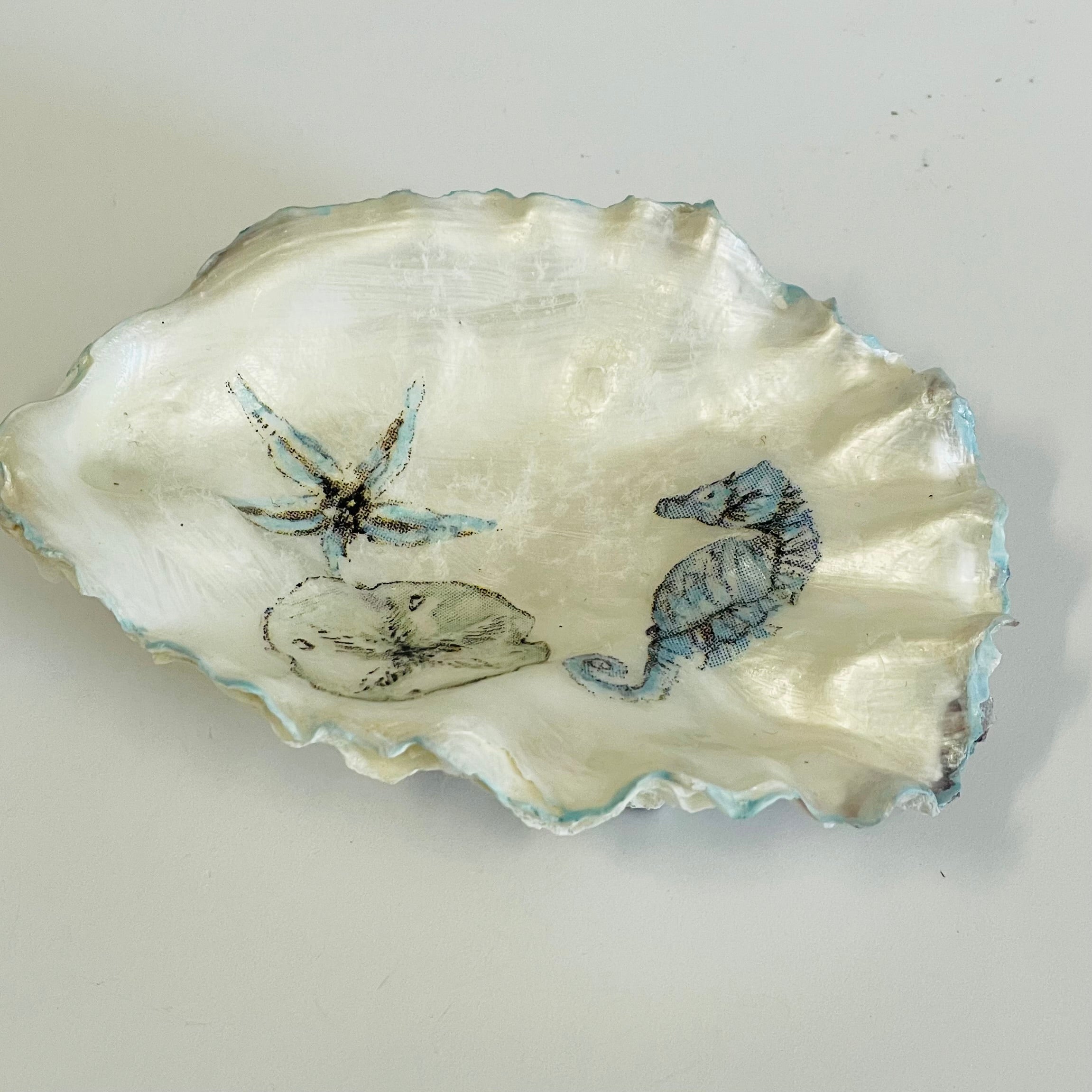Darlene Looy - Painted Oyster Shell - Seahorse, Starfish & Sand dollar