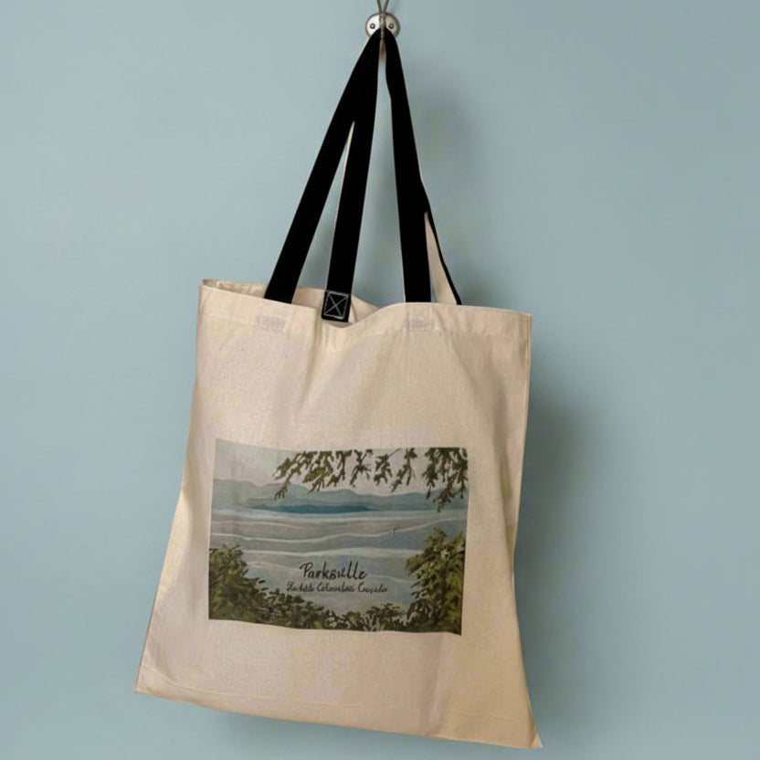 Parksville Pride. These fabric totes feature an original painting by Merrilyn Laursen which showcases the beauty of Parksville. They make a stylish and practical gift. Now available for $15 as a special promotion.