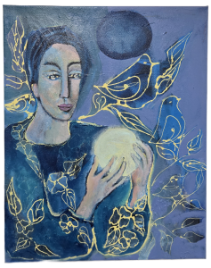 Dema Maksod is a visual artist whose practice is rooted in a feminine, Sufi-inspired, and therapeutic approach to art-making. Her work emerges from inner listening, contemplation, and emotional presence, treating painting as an act of healing rather than production. Through intuitive processes, Maksod explores themes of embodiment, tenderness, memory, and spiritual return. The feminine figure appears not as an object, but as a sacred vessel — a carrier of wisdom, vulnerability, and resilience. Birds, colors, and symbolic forms function as spiritual companions, guiding the viewer through inner states of transformation. Her art is an invitation into stillness — a space where the soul is witnessed, held, and gently restored.